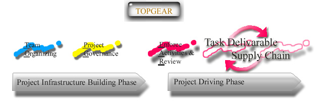 TOP GEAR©とは、主にプロジェクトにおける諸活動を管理・実行するための実践的方法論です。